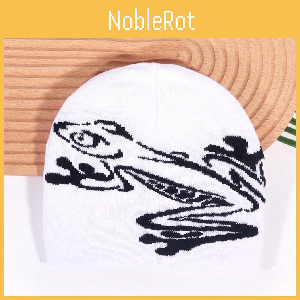 Black Acrylic Cold Weather Cap With Frog Pattern For Streetwear And Casual Use