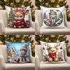 Home Decor Deer with Red Bow Christmas Pillow Cover Pattern Cushion Cover Suitable for Sofa Bedroom Car Pillow Cover