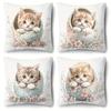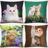 Urocze poszewki na poduszki z nadrukiem kotków, różowymi kokardkami i wzorami kwiatowymi Pokrowiec na poduszkę do sofy dekoracja pokoju w domu Płaski druk 2D