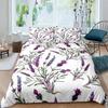 Zestaw poszewek na kołdrę lawendowych, Pastelowy chabrowy, Klasyczny design, Delikatny kwiatowy nadruk, Dekoracja ślubna, Zestaw pościeli, Fioletowy, Biały, Różowy