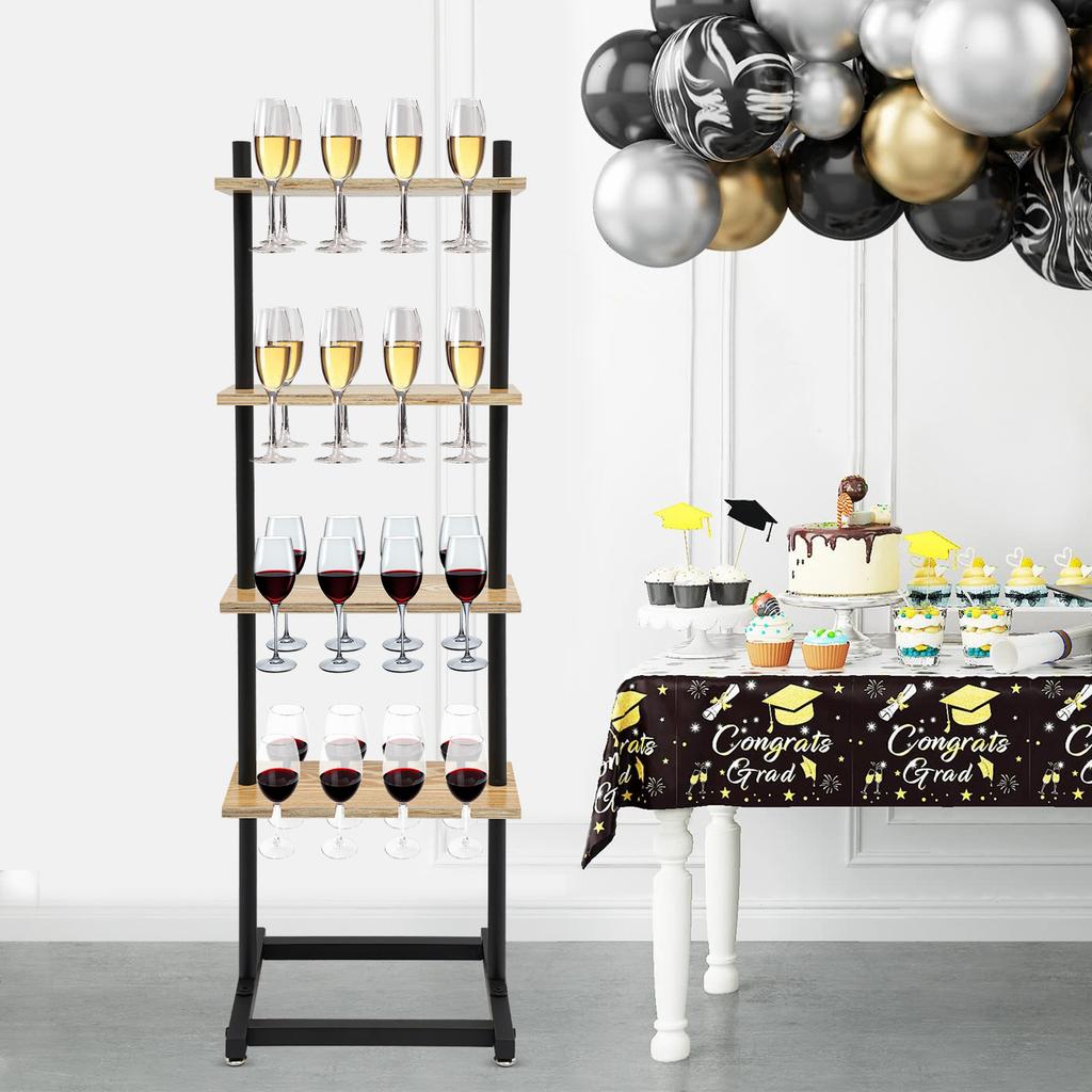 4 Tiers Wood Board Champagne Glasses Rack,Black 155cm Champagne Glass Holder Floor Mounted for Party,Weddings