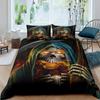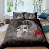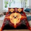 Czarny Niebieski Płomień Czaszka Zestaw Poszwy na Kołdrę Rozmiar Pełny Zestaw Pościeli 3D Szkielet Kości Gotycka Poszwa na Kołdrę Horror Czaszka Poszwa na Kołdrę