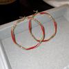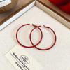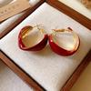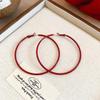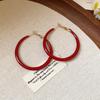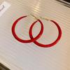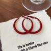 Ankara Red Silver Needle Drip Oil Hoop Earrings: Women's Retro Hong Kong Style, Versatile, with a Unique Design.