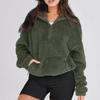 Damska Zimowa Ciepła Wełniana Pluszowa Modna Codzienna Bluza z Długim Rękawem, Kieszenią, Sznurkiem i Pół-Zamkiem Błyskawicznym