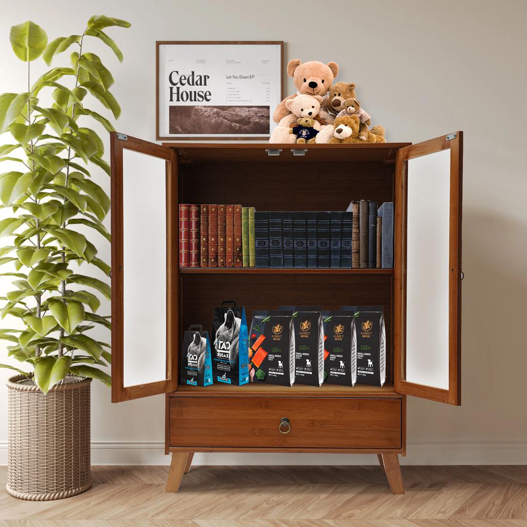Retro Bamboo Kitchen Sideboard W/ 2 Compartments & 1 Drawer, Multi-Functional Organizer, Reestanding Storage Cabinet, Shoe Rack