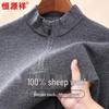 Hengyuanxiang Men's 100% Wool Zipper Half-High Collar Sweater