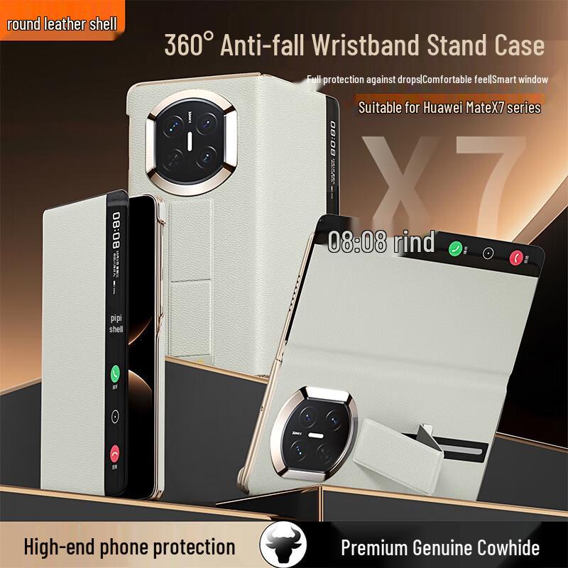 Huawei Mate X7 Skórzane etui z klapką i podwójnym zawiasem oraz paskiem na nadgarstek