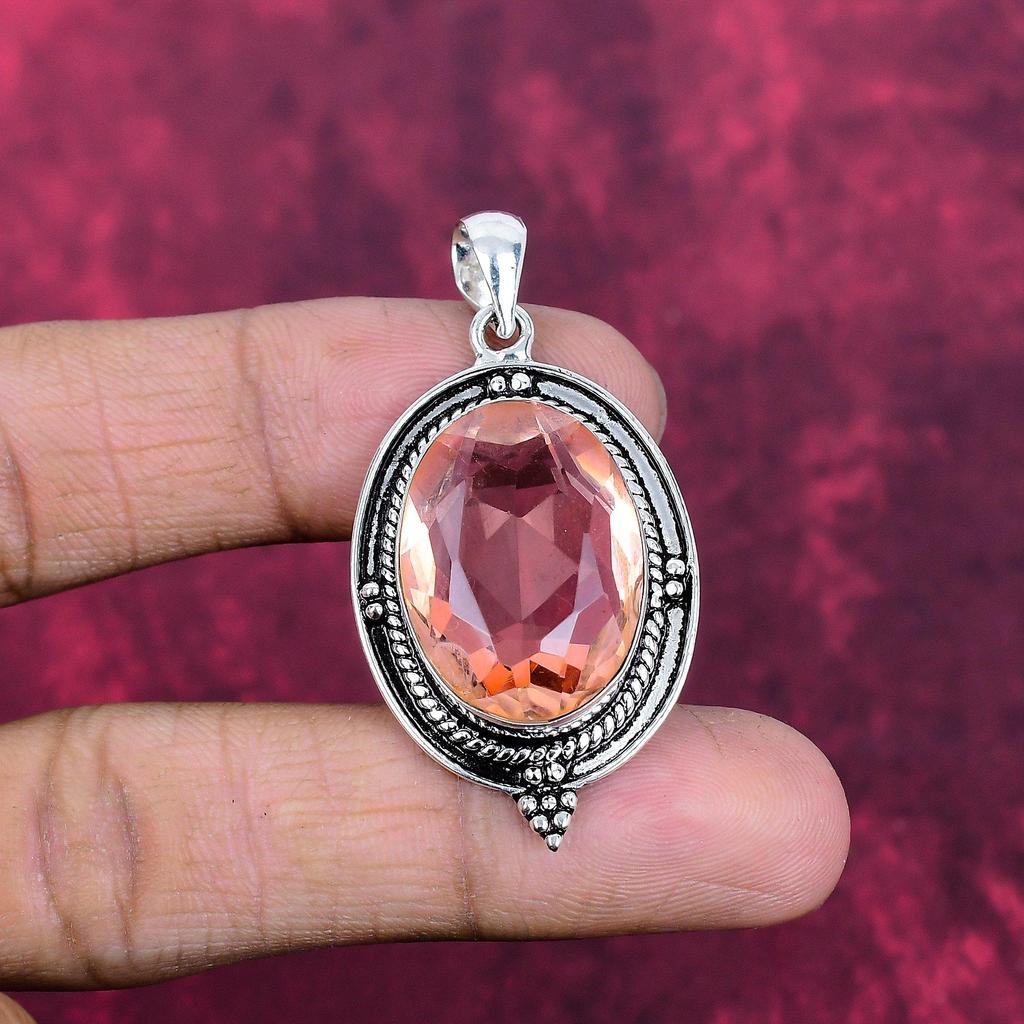 Wisiorek Morganite, ręcznie robiony kamień szlachetny 925 Solidny wisiorek ze srebra próby 925, antyczna biżuteria, prezent zaręczynowy