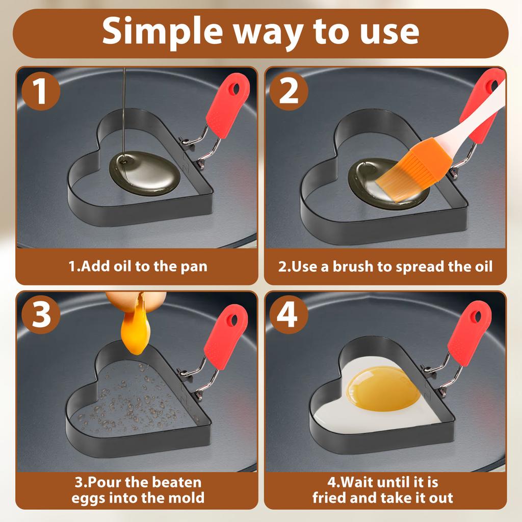 Egg Rings Stainless Steel Egg Molds for Frying Round Egg Cooker Ring Oil Brushfor Griddle Breakfast Cooking Fried Egg Rings