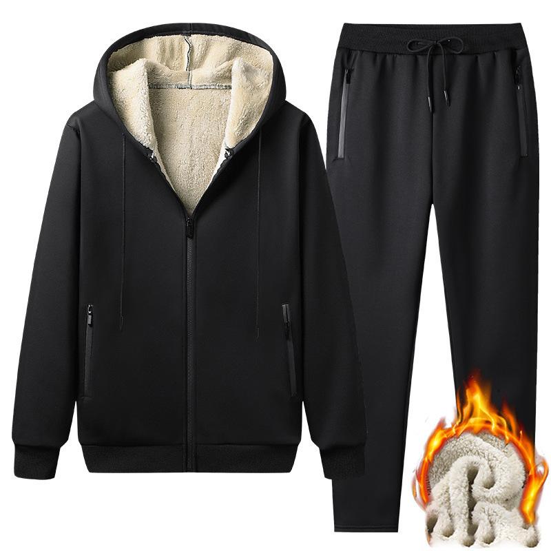 Sweatshirt Suit Large Size Winter Warm Hooded Casual Suit Men's Sherpa Sports Suit Suitable for Minus 20 Degrees Celsius