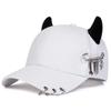 Personalized cow horn iron ring baseball cap versatile student curved brim duckbill cap for men and women street hip-hop