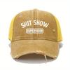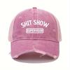 Garbage show printed baseball cap, retro washed and worn, neutral mesh truck driver hat, breathable and adjustable