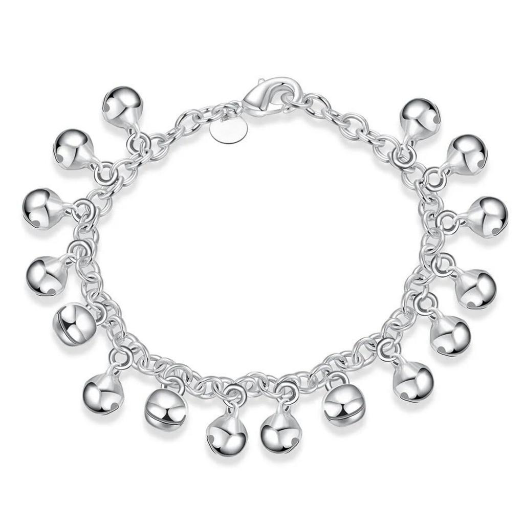 Bransoletka z dzwoneczkami Srebro próby 925 Dzwoneczki Dźwięki Bransoletka z łańcuszkiem koralikowym Dla kobiet Ślub Zaręczyny Biżuteria Bransoletki