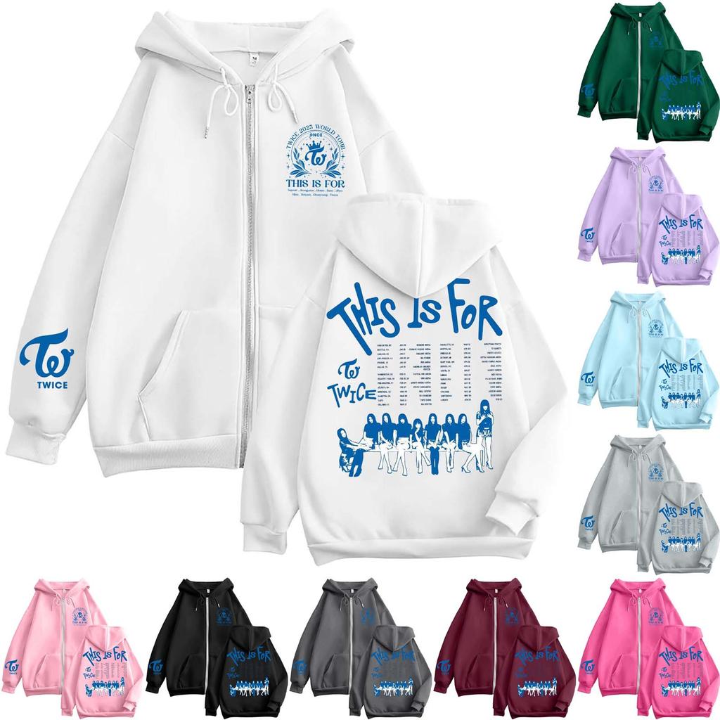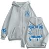 Damska codzienna modna bluza z kapturem zapinana na zamek, z nadrukiem i długim rękawem