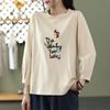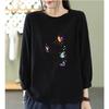 Damski T-shirt z nadrukiem z rękawem trzy czwarte, nowy na wiosnę i jesień, luźny top z okrągłym dekoltem