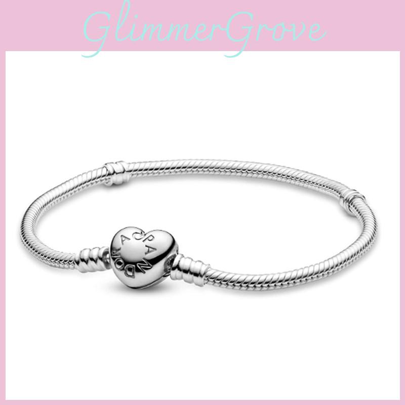 Stylowa i romantyczna bransoletka Pandora z zapięciem w kształcie serca, z łańcuszkiem typu snake i pudełkiem