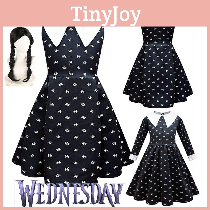 Wednesday Addams Dress Wig Cosplay Costume For Kid Girl Halloween Xmas Party