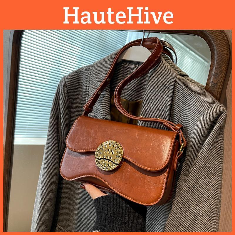 Small Retro Fashion Shoulder Bag Urban Minimalist Style Pu Material Crossbody Bag