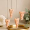 Cool to the touch and softly luminous, this faceted rose quartz pendulum rests with gentle balance in the hand. Its elongated, pale‑pink point and light, steady swing make a simple, meaningful tool for guidance and focus. 🌸