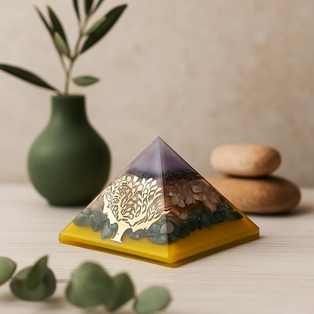 Orgonite Pyramid Tree Gold Base Copper Crystals 70mm