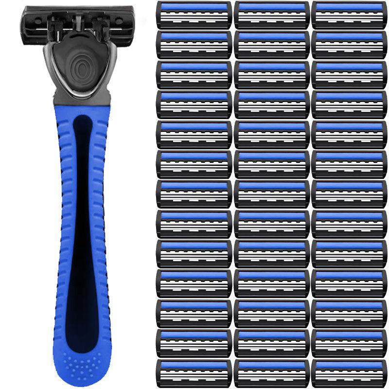 1 szt. Bezpieczna maszynka do golenia, 6-warstwowa manualna maszynka do golenia, Zmywalne, opływowe ostrze ze stali nierdzewnej do podróży i użytku domowego