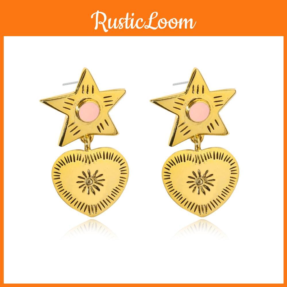 Retro Elegance: These vintage-inspired earrings feature a charming heart pendant and star drop design, perfect for adding a touch of nostalgia to any outfit.