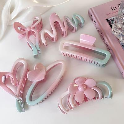 Różowo-zielony gradientowy kolor geometria klamra do włosów nowa dla kobiet dziewcząt eleganckie wsuwki spinki rekin krab modne nakrycie głowy