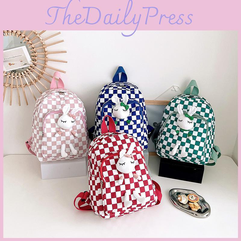 Trendy Children's Backpack For Fall With Stylish Printed Checkered Design And Lightweight Nylon Fabric