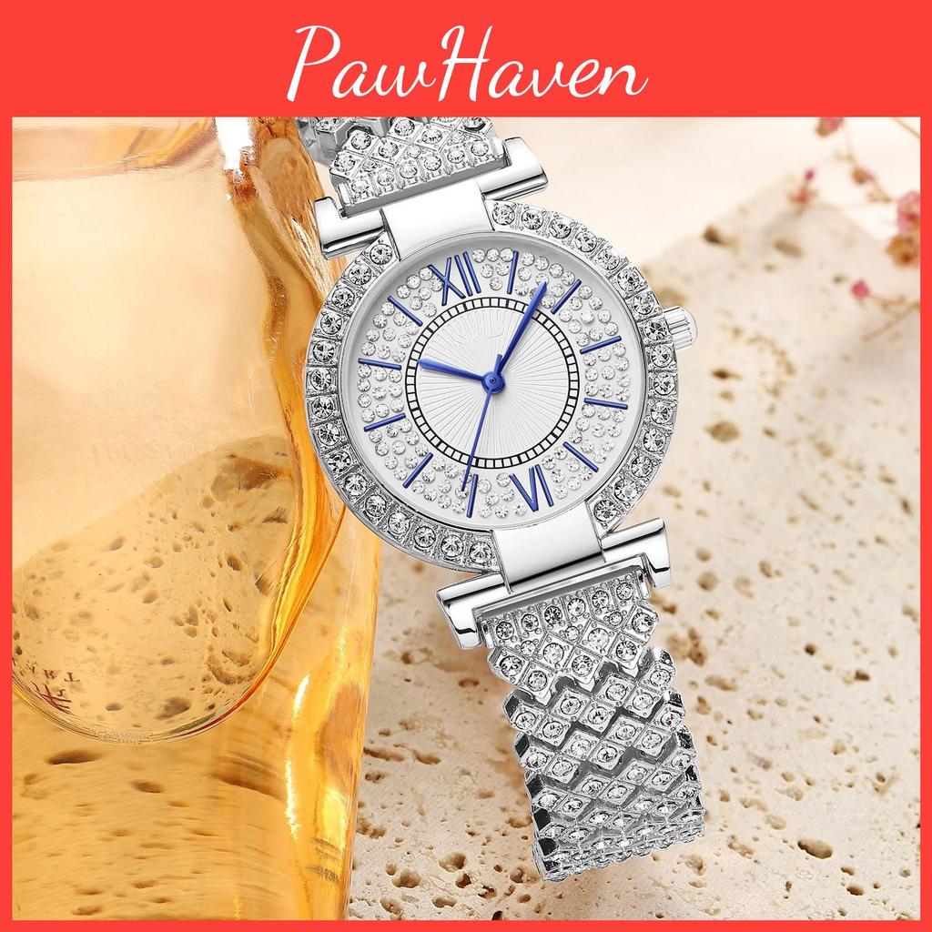 The Full Diamond Ladies Watch features a round dial with a diameter of 34mm and a slim profile of 8mm, making it comfortable to wear all day long. The dial is protected by a mineral reinforced glass mirror, ensuring durability and resistance to scratches. The watch strap is made of alloy, providing a lightweight and comfortable fit on your wrist. The jewelry clasp adds a touch of elegance, securely fastening the watch in place.