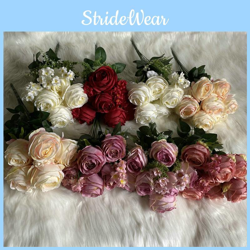 This velvet rose bouquet features realistic flower props crafted from high-quality synthetic materials, offering lifelike appearance and durability. The bouquet measures approximately 12 inches in height and is available in various colors including dark red, white, blush, pink, ivory, champagne, and purple. Ideal for wedding hall decor or event arrangements, it enhances spaces with elegant floral accents. Maintenance involves gently wiping with a soft cloth to preserve its appearance.
