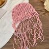 Stylish Handmade Knitted Hat For Women With Bohemian Floral Design And Tassels