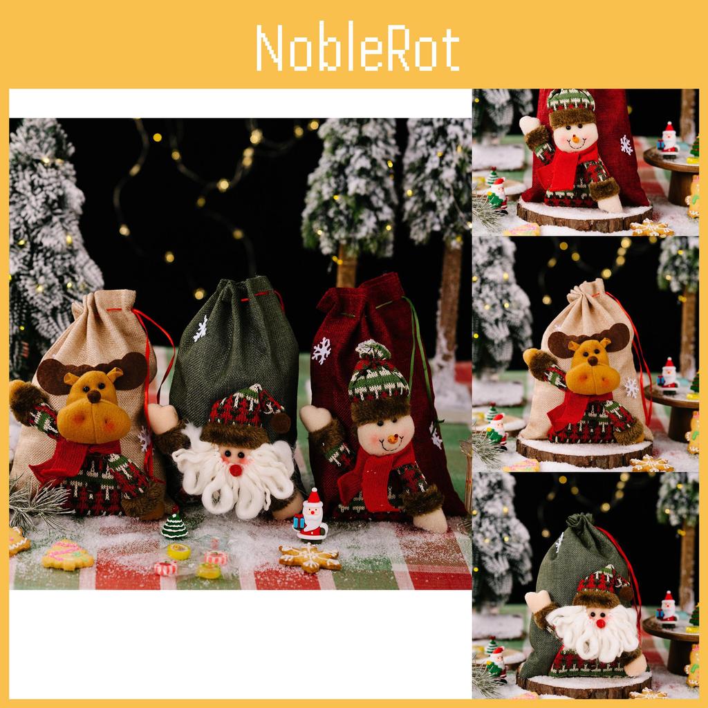 Świąteczne kreskówkowe worki ze sznurkiem na Świętego Mikołaja, bałwana i renifery na Boże Narodzenie