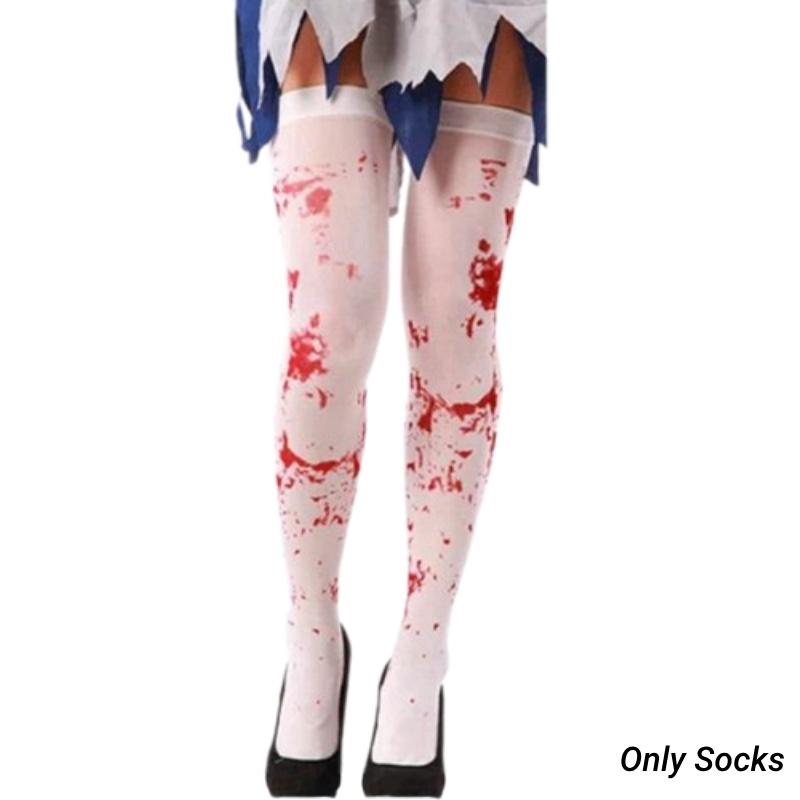 Przedstawiamy Krwawe Pończochy na Halloween, idealne na imprezy halloweenowe i wydarzenia kostiumowe.