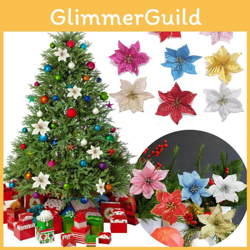 Vibrant 10x Christmas Large Poinsettia Glitter Flower Decorations For Holiday Cheer