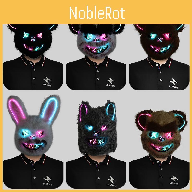 Kolorowa świecąca maska królika na imprezy halloweenowe i występy teatralne. Idealna na zabawy i wydarzenia świąteczne.