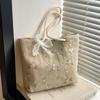 Casual Retro Large Capacity Tote Bag For Summer 2024 Stylish Handheld Design In Khaki And White