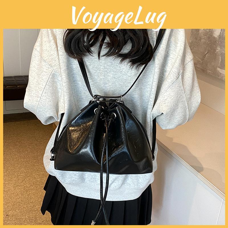 Chic Pu Leather Bucket Bag For Women 2024 Summer Trendy Multipurpose Backpack