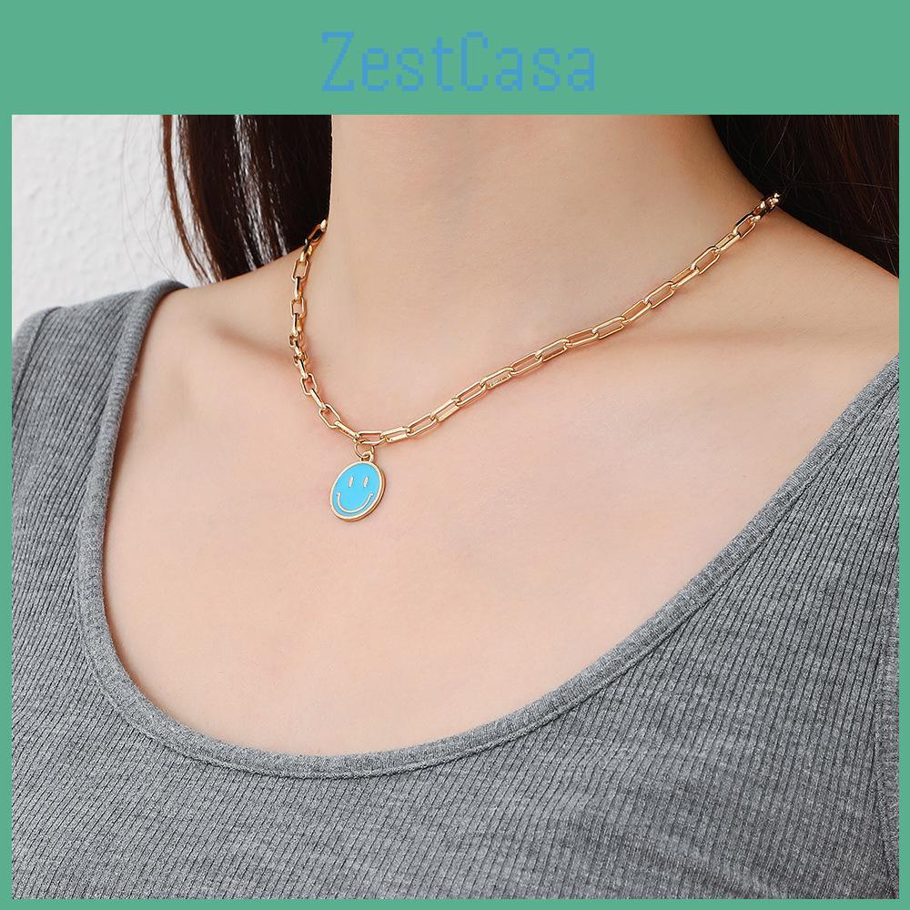 Unique Alloy Smiley Face Pendant Necklace In Vibrant Colors For Chic Everyday Wear