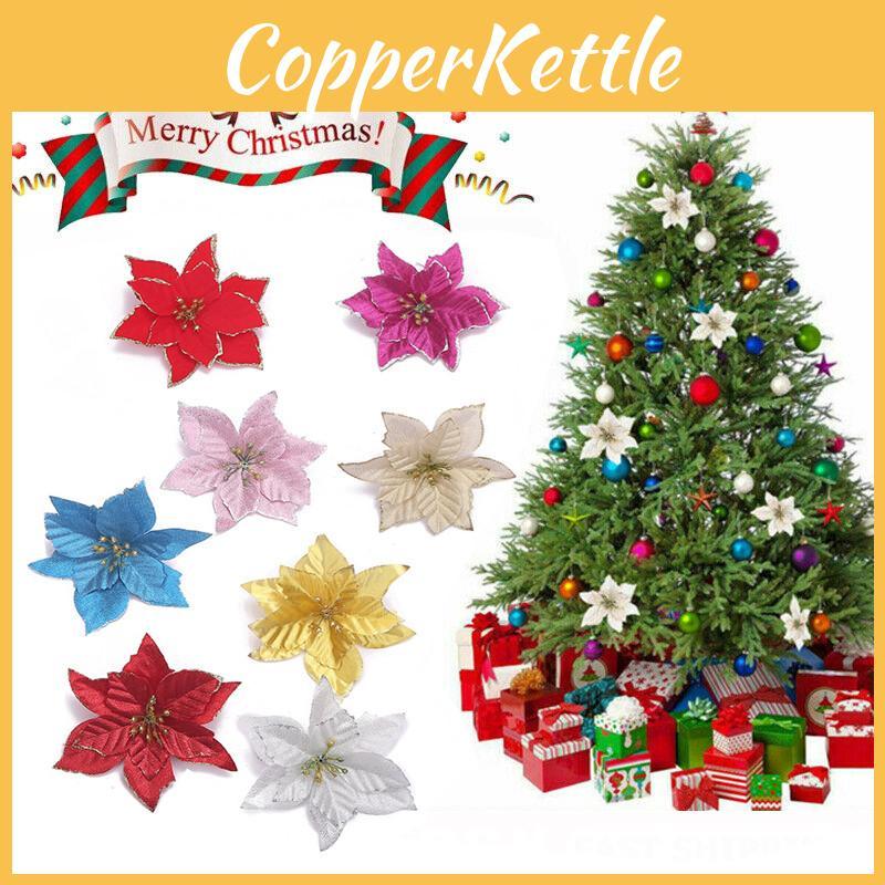 Vibrant 10x Christmas Large Poinsettia Glitter Flower Decorations For Holiday Cheer