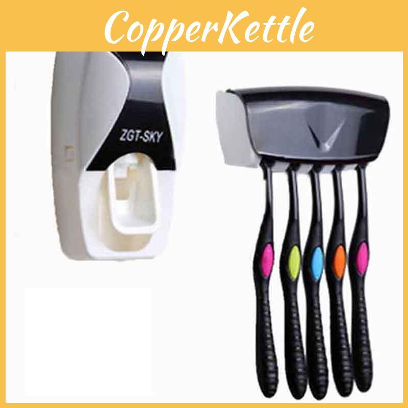 Automatyczny Dozownik Pasty do Zębów i Uchwyt na Szczoteczki do Zębów Montowany na Ścianie Stojak dla Dorosłych i Dzieci