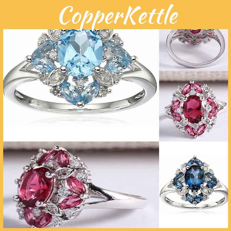Exquisite Silver Plated Ring Featuring Natural Blue Sapphire And Stunning Rhinestones