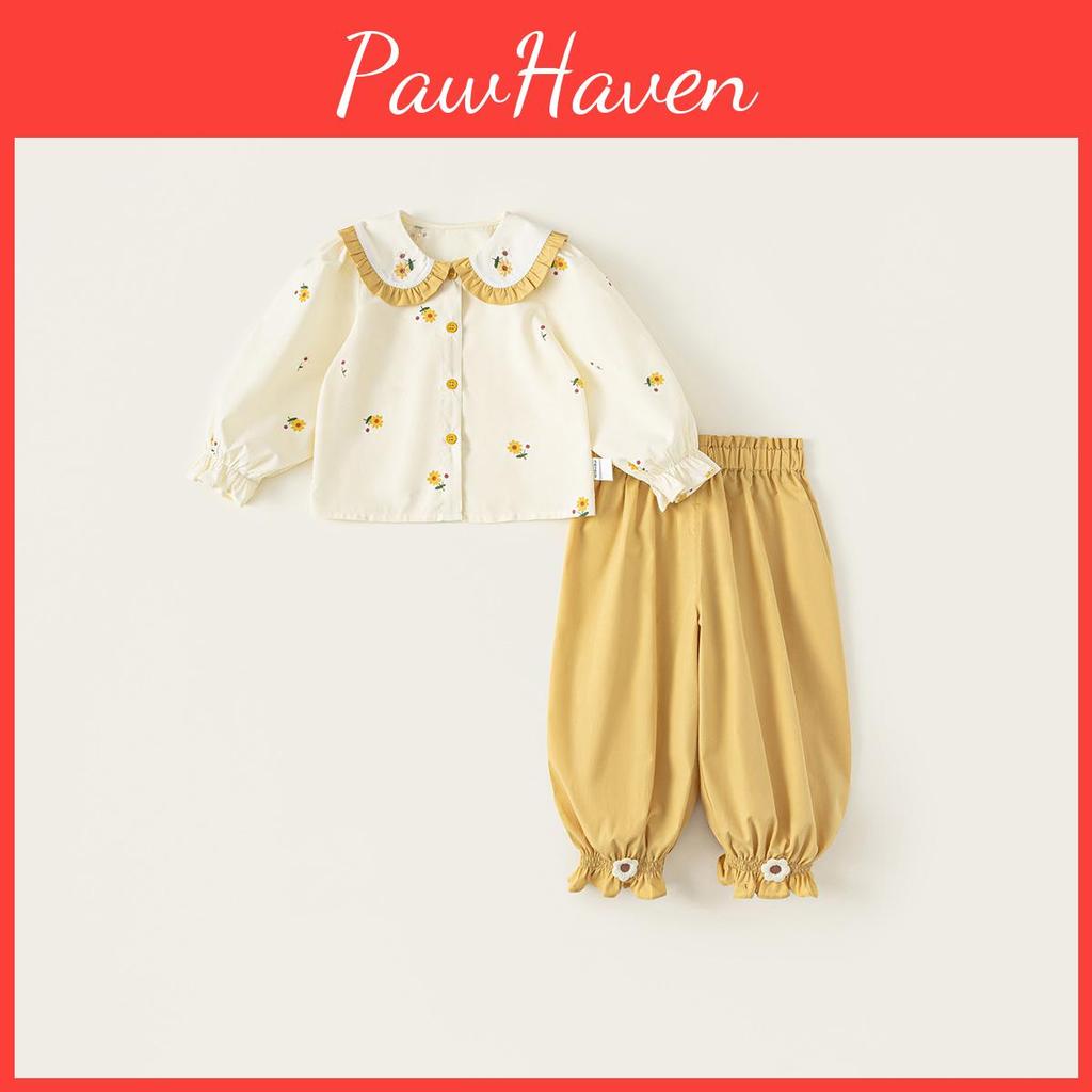 This girls' spring and autumn two-piece set features a long-sleeve printed shirt with color-blocked lace collar and matching casual cuffed pants. Made of cotton, the fabric is soft and comfortable,with pants suitable for children 3-8 years old. Ideal for everyday wear or outdoor activities, it offers ease of movement and breathability. Easy to care for, it can be wiped clean with a damp cloth for lasting freshness.