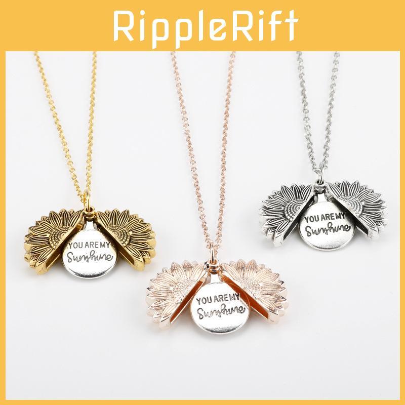 Sunflower Double Layer Pendant Necklace With Open Flower Charm For Couples