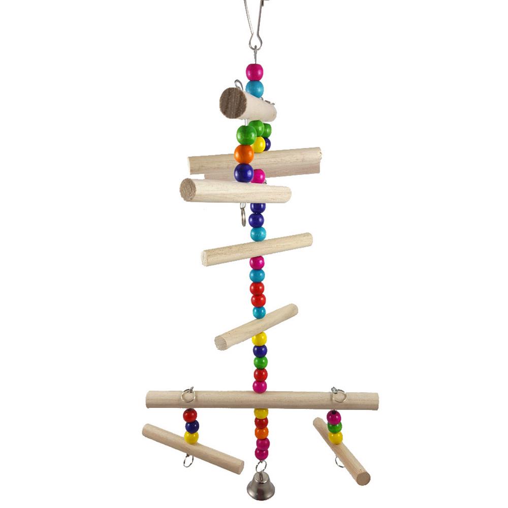 Wood Parrot Stand Bird Standing Toy With Bell Play Toys Claws Grinding Bar