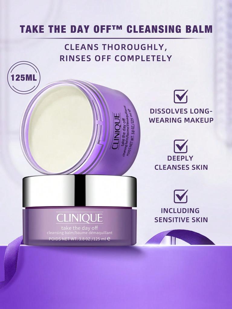 Effortlessly remove makeup and impurities with Clinique’s iconic Take The Day Off Cleansing Balm—125ml (3.8 OZ.) of gentle, deep-cleansing care that melts away even waterproof makeup, perfect for all skin types, including sensitive skin.