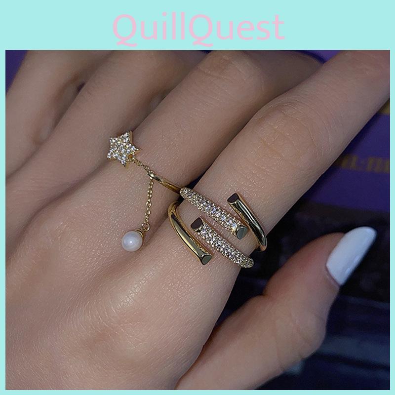 Exquisite Korean Rhinestone Five-pointed Star Adjustable Open Ring For Women Fashion Jewelry