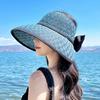 This stylish summer straw hat features a large brim and butterfly accent, providing effective sun protection and breathability. Made of woven grass fabric, suitable for head sizes 55-60 cm. Ideal for outdoor activities, beach outings, or casual wear. Wipe clean with a damp cloth to maintain its appearance.