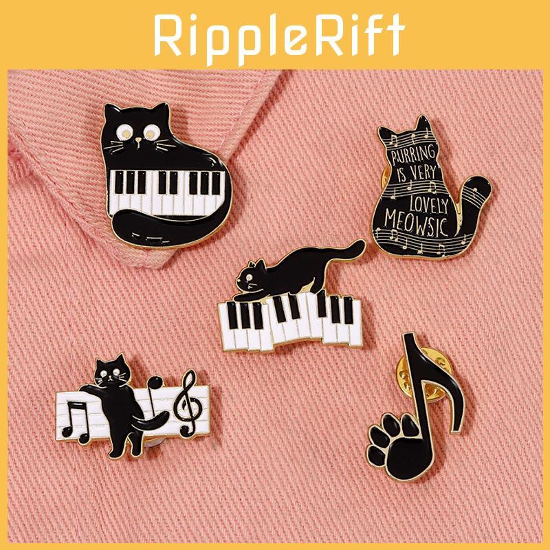 Adorable Cat Shaped Brooch Displaying Creative Cartoon Piano Notes With Unique Charm