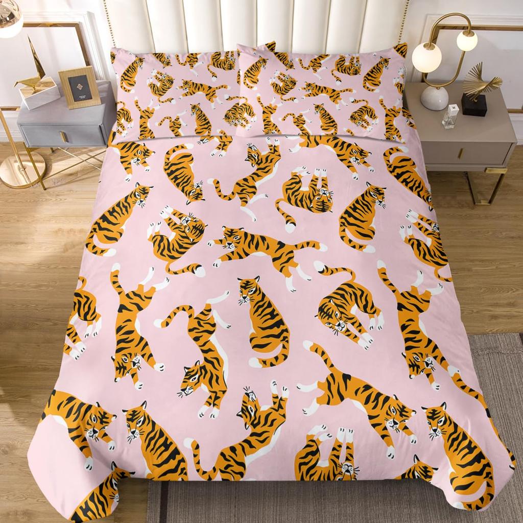 Cartoon Tiger Duvet Cover Set Wild Animal Theme Comforter Cover Kids Teens Adults Soft Microfiber Polyester Bedding Set 2/3 Pcs
