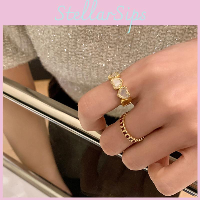 Stylish Shell Heart Ring For Women With Elegant Geometric Design And Adjustable Size